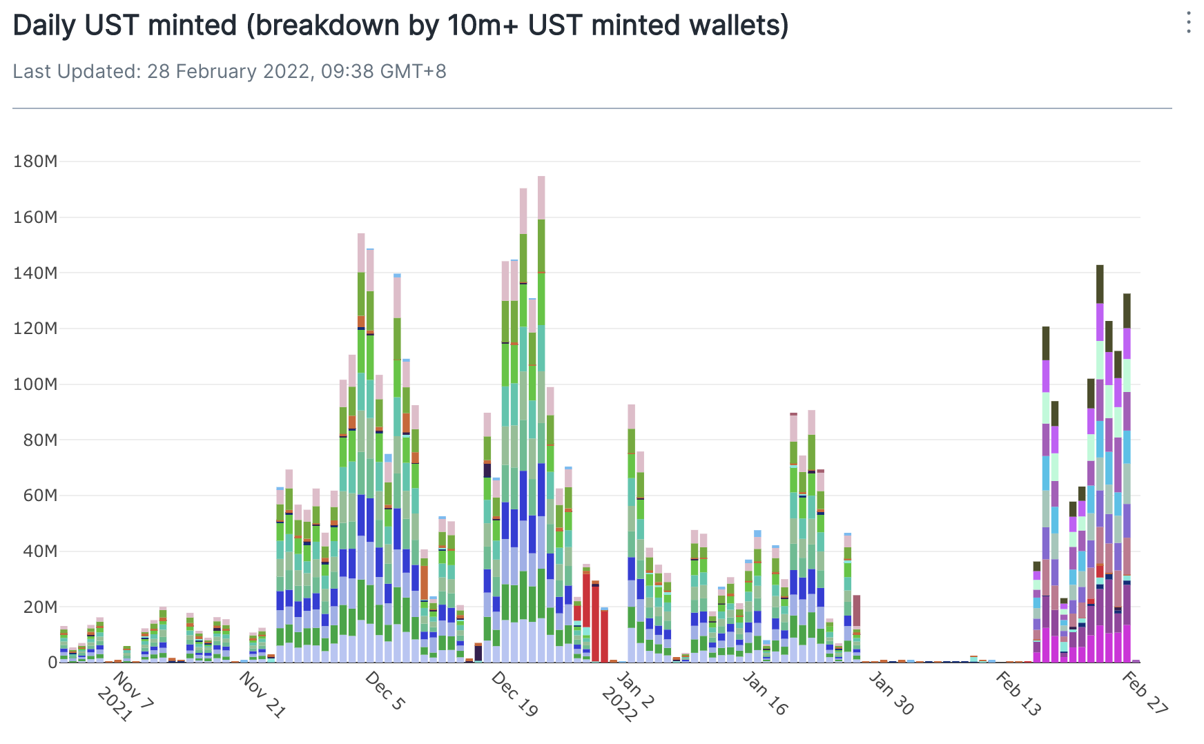 Terra is a fast-growing ecosystem on the ride of its decentralized algo-stablecoin - $ust, and its native chain token $luna. This dashboard hopefully brings insights on how quantifying metrics measures whether the ecosystem is expanding in a healthy way.